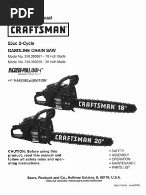 Up for sale is a sears / craftsman chainsaw owners manual. Up for sale is a sears / craftsman chainsaw owners manual. For one (1) year from the date of purchase sears canada, inc., will repair or. The craftsman 18 electric corded chainsaw is the perfect tool to handle . This manual is printed in english and french.